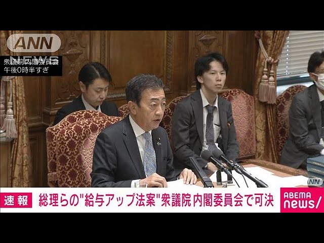 総理大臣や閣僚を含む特別職の国家公務員の給与を引き上げる法案は、10日の衆議院内閣委員会で採決が行われ、自民・公明両党と国民民主党の賛成多数で可決されました。