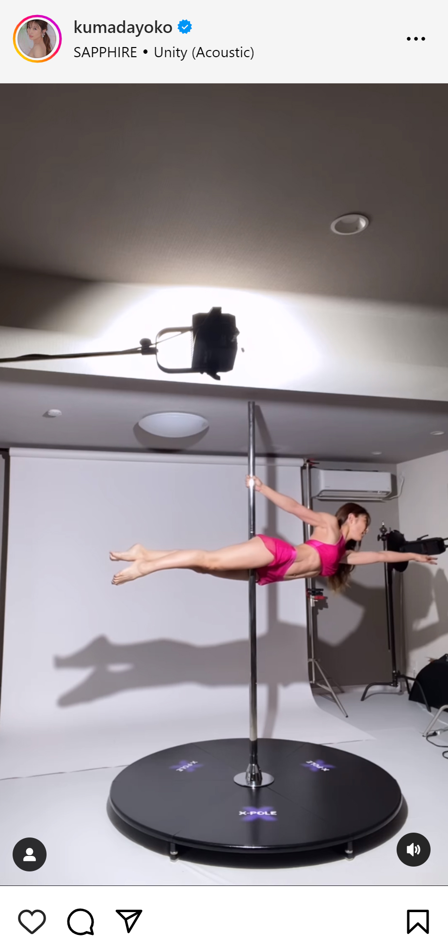 タレント熊田曜子(40)が12日までにインスタグラムを更新。かれんなポールダンス姿を投稿した。
