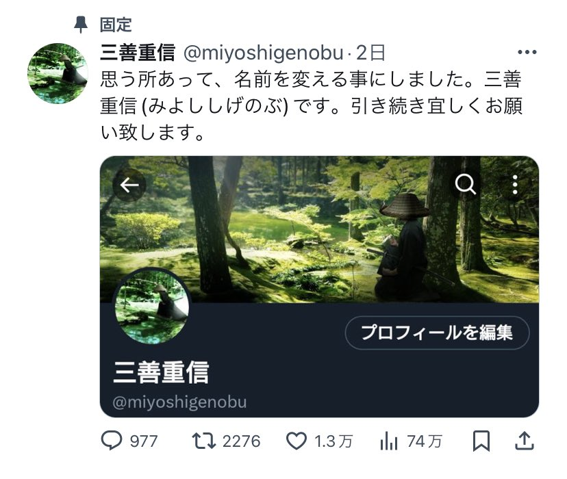 「海/乱/鬼」から「三善重信」にいきなり名前変更