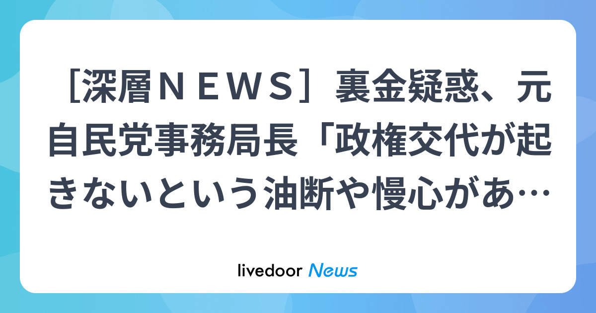 【裏金疑惑】元自民党事務局長「政権交代が起きないという油断や慢心があった」