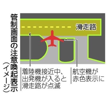 対策検討会議で議論し、08年3月の取りまとめで管制官の人的ミスを防ぐためのバックアップとして「滑走路占有監視支援機能」の整備を進めることが盛り込まれた。