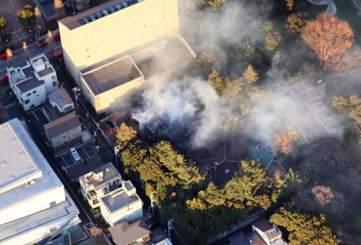旧田中角栄邸の敷地内で火災 1階2階・800m2焼ける ポンプ車など22台で消火活動中