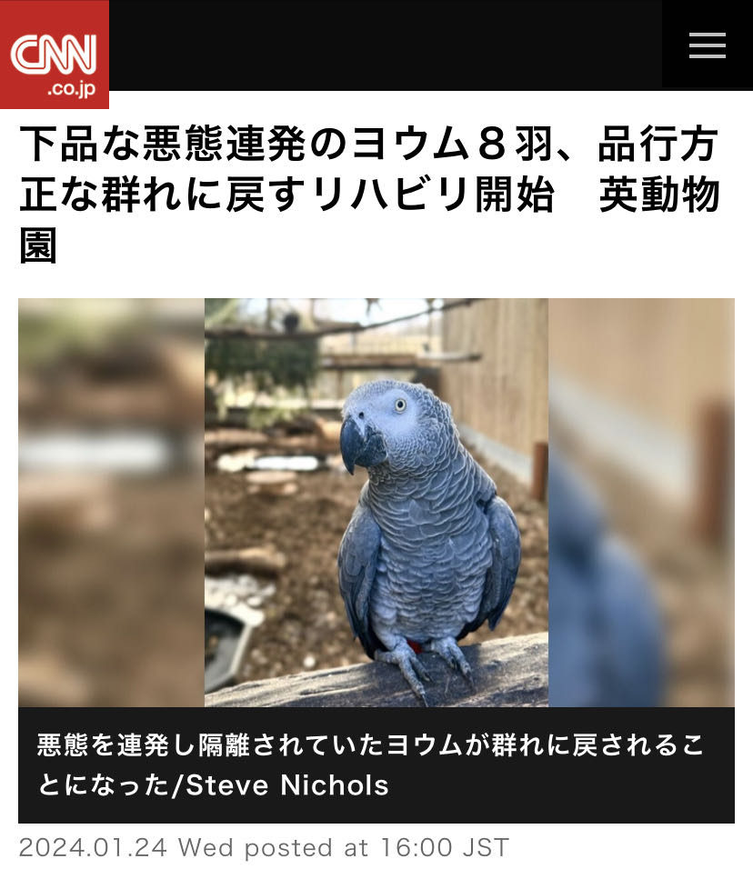 引用元: ・【🦜】卑猥な言動を連発するオウム集団、品行方正に戻すリハビリ開始 英動物園 [おっさん友の会★]