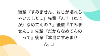 ニュース速報 【日本語難しい】「ねじが壊れました」と報告→先輩「なめてんの?」 会話のすれ違い「叱られているのかと」 1: 名無し 2023/11/06(月) 18:04:13.55 ID:??? TID:alex 工場における、先輩と後輩の会話のすれ違いを紹介した投稿がX(旧ツイッター)で注目を集めている。 東京大学で知能機械情報学を専攻しているちょこ西... 2023.11.07 ニュース速報