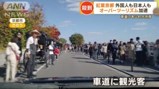 ニュース速報 紅葉の京都に観光客が殺到 宿泊料金“倍に値上げ”も…訪日客「それでも安い」 1: 名無し 2023/11/21(火) 08:01:46.07 ID:p6UuKsBc9 先月、日本を訪れた外国人は251万人を超え、コロナ禍前の2019年の同じ月を上回りました。紅葉シーズンの京都は大混雑していて、ホテルの宿泊料金はコ... 2023.11.21 ニュース速報