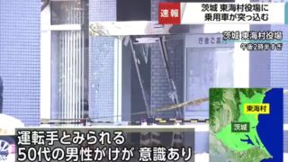 1: 名無し 2023/12/06(水) 15:30:39.97 ID:TB089Zu10 BE:878978753-PLT(12121) 茨城 東海村役場に乗用車が突っ込む 運転手の50代男性けが 日立市役所前の広場に車が突っ込み、東海村...